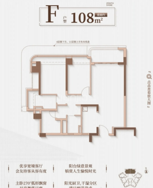 177㎡大四房户型:三卫格局,主卧套房带步入式衣柜与景观飘窗,尺度堪比珠江新城豪宅。