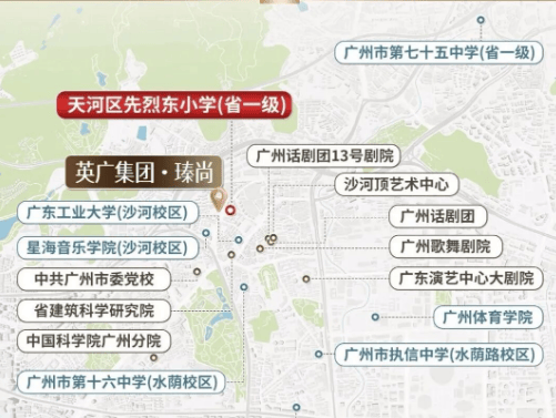 项目对口省一级先烈东小学(本校),并配有4班幼儿园,形成“幼儿园+小学+中学”的12年教育闭环。周边还有星海音乐学院附属中学等教育资源,为孩子的成长提供了全面保障。