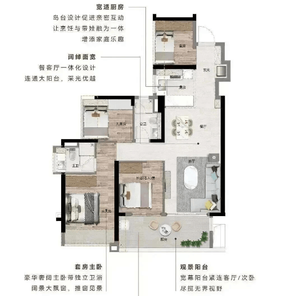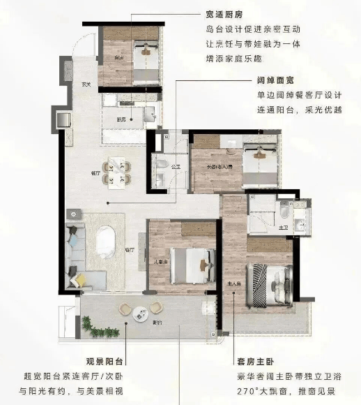 108/118㎡四房:U型厨房+观景阳台,118㎡更享三开间朝南;