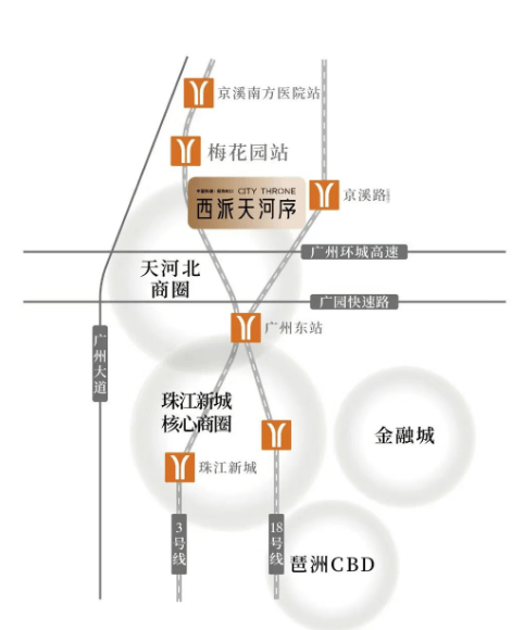 西派天河序紧邻地铁3号线梅花园站,步行仅需4分钟即可到达地铁站,乘坐地铁5站即可直达珠江新城,交通极为便捷。此外,周边还有正在建设的18号线北延段京溪路站,预计2026年开通,将进一步提升项目的交通便利性。项目所在的天河区是广州市的核心区域之一,经济发展迅速,未来升值潜力巨大。