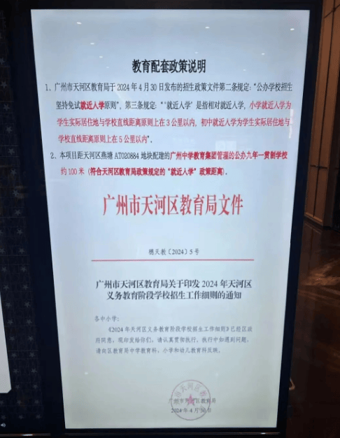 项目配建了一所9班规模的幼儿园,中小学教育则依赖周边现有的教育配套设施。邻近的天河和樾府小区配建的九年制学校已被纳入广州中学教育集团,并由广州中学负责筹建与管理,能够充分满足两小区居民的子女入学需求。