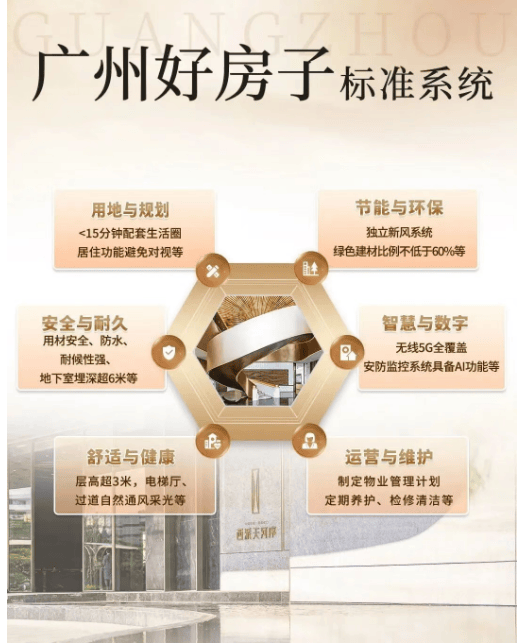 智慧+品质住宅:按照广州市“智慧+品质”住宅方案建造,综合评分不低于80分,确保交付标准达到优秀水平。