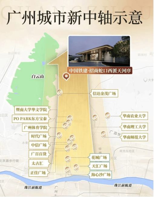 优越的地理位置:地处广州中轴线上,距离珠江新城仅7公里,交通便捷。