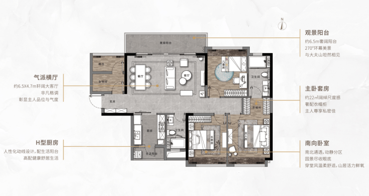 电建·洺悦玉府提供105至125㎡三至四房户型,采用横厅和南北通透设计。125㎡四房户型拥有双阳台和步入式衣帽间,采光通风极佳,景观视野无遮挡,实用率超过八成。105㎡三房户型为纯南向,三开间朝南设计保证充足采光,客厅大开间布局动静分区合理。每一户型都充分考虑居住舒适性和功能性,让家庭生活兼顾美学与实用价值,满足不同家庭的居住需求。