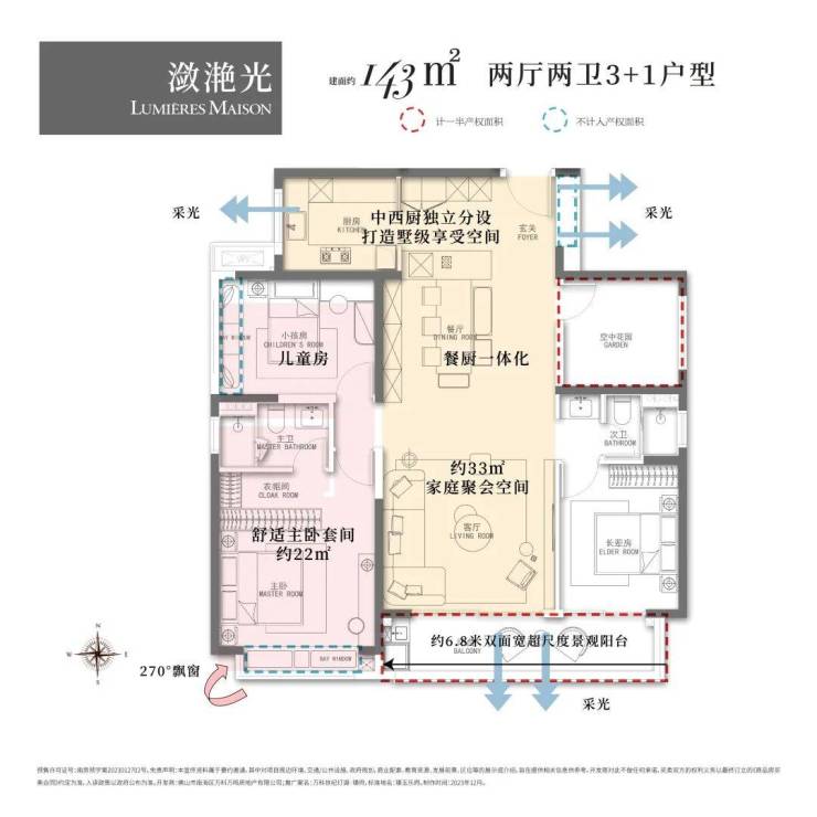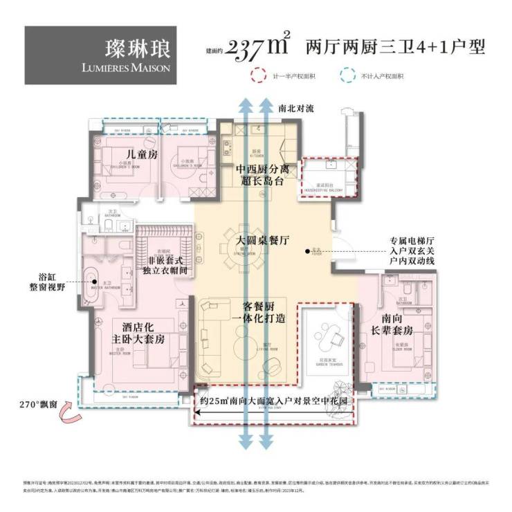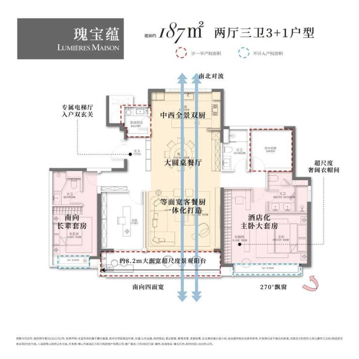 瑧府户型设计注重美学与功能兼顾,推出143-237㎡多样化大平层产品。143㎡户型采用3+1设计,北南通透,配备7米大阳台,实现日照与通风最优化。165㎡和187㎡户型设有IMAX阔景阳台及南向双套房设计,保证高端舒适的居住体验。237㎡顶级户型拥有L型阔景阳台和70㎡客餐厅一体化设计,为大家庭提供宽敞舒适的生活空间。户型布局合理,功能分区清晰,兼顾景观与实用性,为千灯湖高端人群提供尊贵、舒适的居住体验。