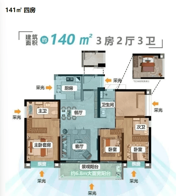 力诚榕诚湾的户型设计独具匠心,注重空间利用与居住体验。以125㎡ 2 + 2房(灵动空间)为例,该户型拥有独立玄关,收纳空间充足;LDKB大方厅采用南向横厅设计,采光极佳;阳台视野开阔,可欣赏河景;主卧配备270°飘窗、衣帽间和独立卫浴,居住舒适度高。销售称此户型使用率超过130%,现场感受确实宽敞。141㎡四房则更偏向舒适型,入户有小花园,阳台全南向,可看河看公园,四房布局满足三代同堂的居住需求,主卧同样是套房设计且能看河。交付标准方面,配备大金中央空调、博世厨具三件套(含洗碗机)、杜拉维特卫浴、华为全屋智能,在同价位楼盘中具有较强的竞争力。