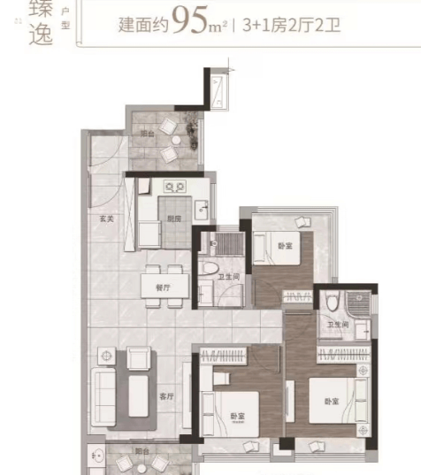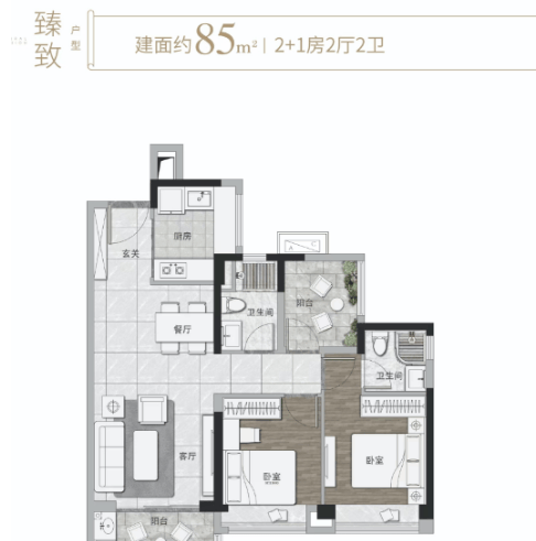 户型方正实用,南北通透,动静分区合理,阳台设计充分利用采光,满足不同家庭结构及生活需求。