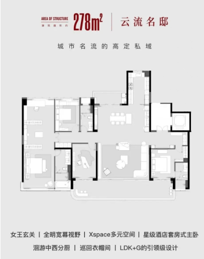西派尊府提供从约76-128平方米的舒适型三至四房到278-370平方米的奢华平层等多种户型选择,适合不同家庭结构的需求。特别是引入了LDK+G设计理念,全明宽幕视野、星级套房系统等元素的应用,让每一平方米都成为艺术品。大面积玻璃幕墙设计,使得居住者可以享受270°的无敌江景,实现了空间与自然景观的无缝连接。