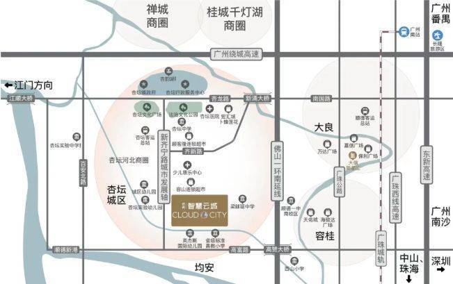 城际脉络:紧邻佛山一环南沿线,瞬接广州绕城高速,与广州的联系更加紧密;广珠城际轻轨助力居民快速通达广州,拓展了居民的生活半径,为工作通勤与休闲出行提供了更多选择,使居民能够从容享受广佛双城生活。