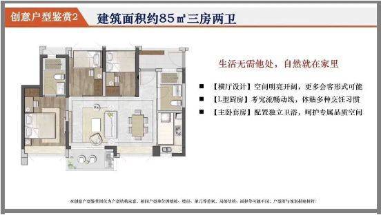 空间亮点:较 75㎡户型空间更宽敞,卧室尺度更大 。客厅连接阳台,采光通风佳 。整体空间布局更舒适,满足家庭对居住品质的追求 。