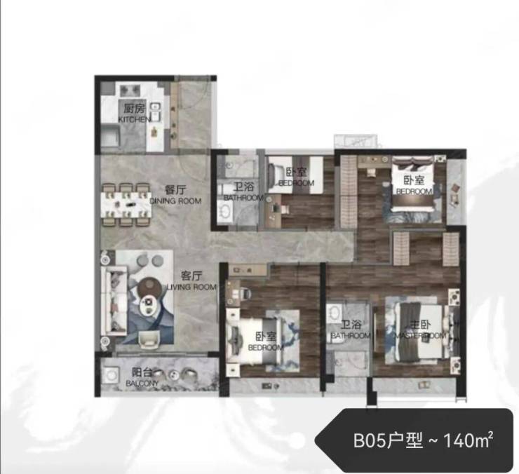 在售B栋【观玥】组团提供60-140平方米的二至四房户型,满足不同家庭结构的需求。建筑外立面由著名设计师冼剑雄老师手绘设计,采用大面积玻璃幕墙,既美观又实用,保证了每户的良好采光和视野。