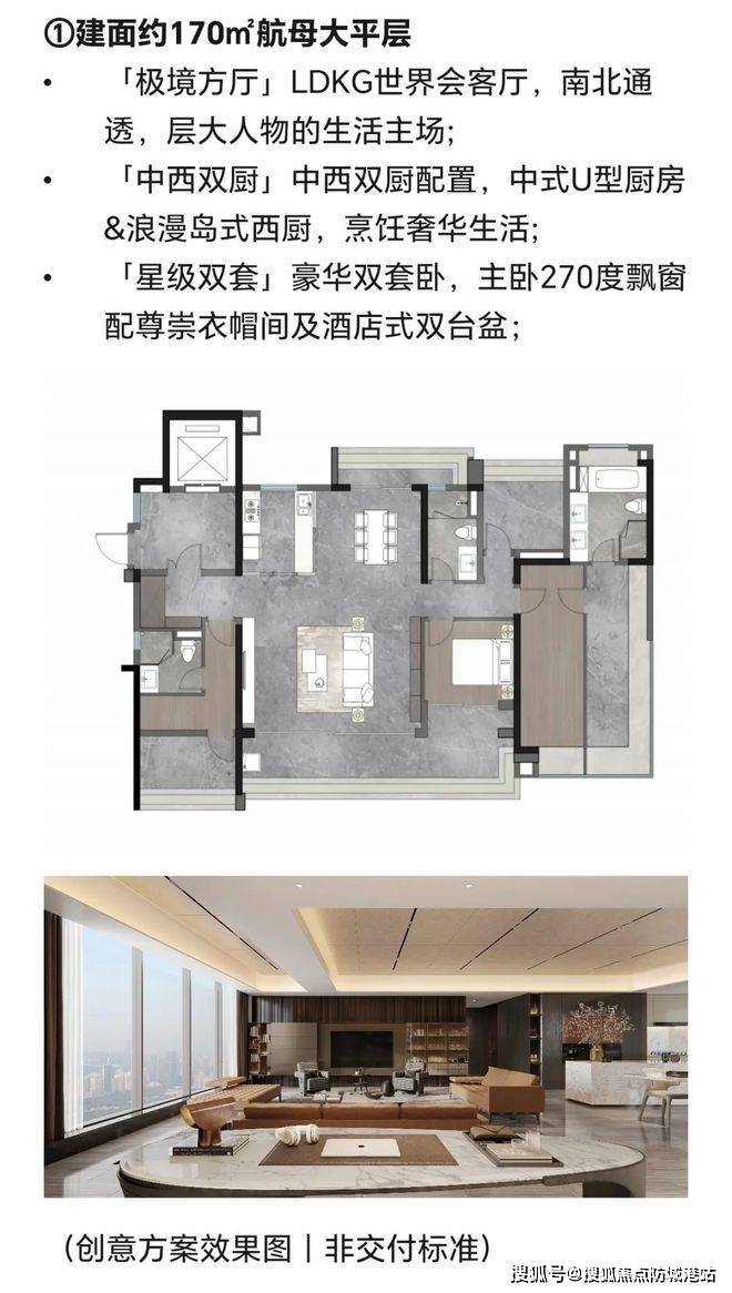 户型设计方面,主推107-180㎡三至四房,其中143㎡全景舱奢宅配备44㎡LDKG通厅、U型中厨+岛式西厨,270°转角飘窗实现无界视野;170㎡极境方厅采用双套卧设计,客厅开间达11.8米,得房率115%经市测绘中心实测认证(报告编号GZ2025CH001)。全屋配置汉斯格雅卫浴、博世厨电、大金中央空调等国际一线品牌,精装标准对标豪宅项目。