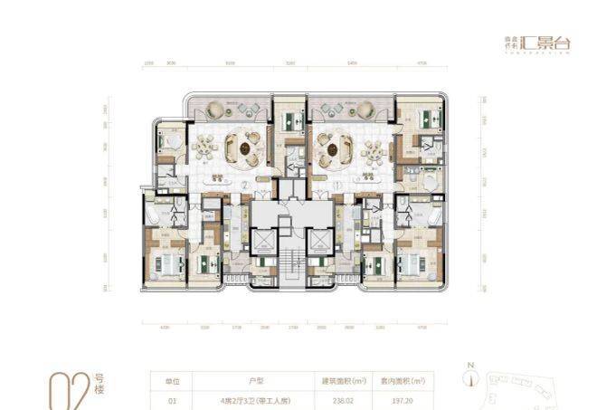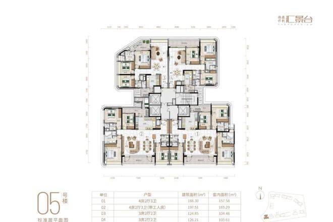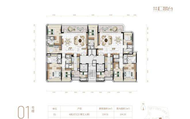 在售户型方面,项目产品涵盖123-352㎡三至五房,共8类户型,在售面积为124~290m²,户型实用率约82-84%,精准契合高净值人群的改善与收藏需求,无论是三口之家、二孩家庭,还是三代同堂,都能找到适合自己的居住空间。近日加推的全新240平南向大平层,更是集项目优势于一身,全南向布局,确保充足的采光与通风,搭配开阔的空间尺度,让室内视野极佳,既能享受城央繁华景观,又能俯瞰社区生态美景。所有户型都延续了项目的匠心设计,方正通透,空间布局科学合理,注重私密性与实用性的平衡,大客厅、大主套、双阳台等设计,满足业主的高端居住需求,同时融入弧形元素与恒适系统,让每一位业主都能在舒适、便捷的空间中,享受顶豪生活的尊崇与惬意。
