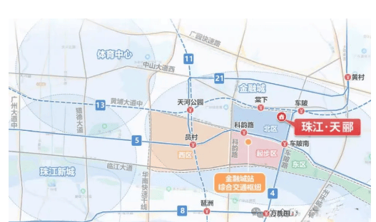 珠江天郦位于 4 号线车陂站西边直线约 600 米处,交通出行十分便捷。项目楼下就是 BRT 站点,周边已开通的地铁线路有 4 号线、5 号线和 21 号线,在建的 13 号线二期也紧邻项目,未来 13 号线二期开通后,业主可通过 500 米私家连廊接入合生汇广场,连贯地铁站 13 号线棠下站,进一步提升出行效率。在道路交通方面,项目出门即是中山大道,附近还有广园快速、华南快速、黄埔大道以及已开通的车陂南隧道,通过这些交通干道,业主能快速到达天河珠江新城、海珠琶洲等广州核心区域,轻松融入城市便捷生活圈。