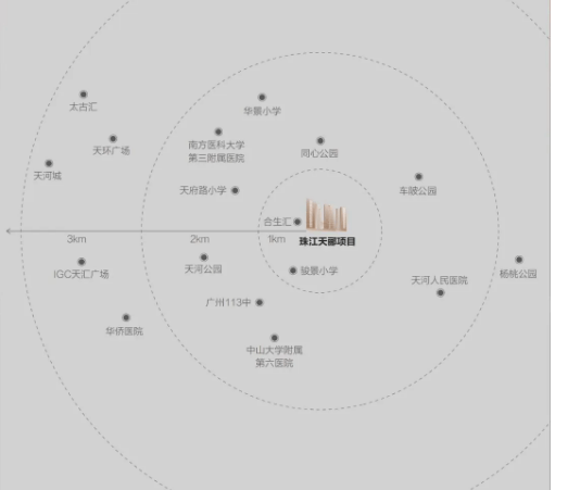 珠江天郦周边配套设施十分完善,能充分满足业主的日常生活需求。在商业配套方面,项目一公里范围内有卜峰莲花、沃尔玛等大型商超,附近还有棠下大排档美食街,业主日常购物、用餐十分方便。值得一提的是,项目西侧有在建的大型商业综合体合生汇广场,该广场属于高端城市综合体,体量达 40 万㎡,汇聚了五星级酒店、高端会所、大型商业购物中心等多种业态,未来建成后能级或比天环广场、万菱汇还要高。业主不仅可通过私家连廊无缝接入该广场,享受购物、餐饮、娱乐、休闲、乐童等一站式商业体验,还能通过商场串联地铁、写字楼等业态,进一步提升生活便利性。