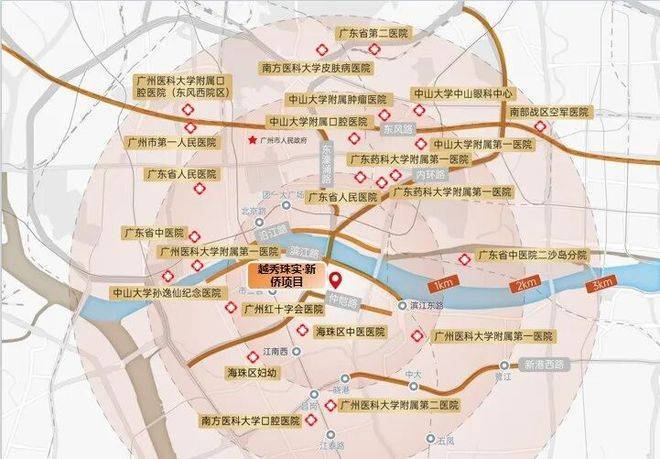 医疗配套:项目3公里范围内有南方医科大学珠江医院(三甲)、中山大学孙逸仙纪念医院(三甲)、广州市红十字会医院(三甲)等多家三甲医院。