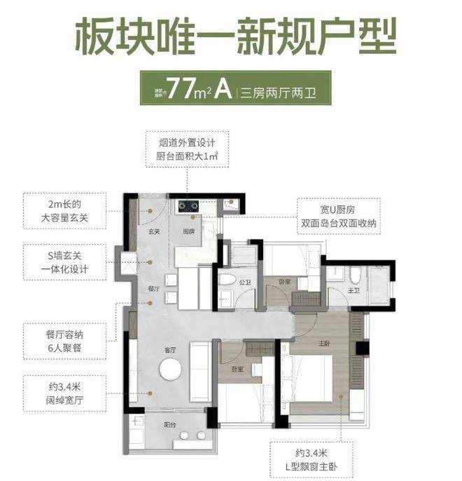 户型设计上,万科・檐屿城主推建面约 77 - 135㎡三到四房,作为南站万博首个新规产品,实用率超 120%,最高约 138%,在板块内极具竞争力。通过 300 多户客户真实调研,结合日常高频使用空间,推出 14 种变异户型,部分阳台开间超 7 米,满足不同客户 “量身定制” 的需求。装修方面,采用 99 项精选定制板材,如珍贵的雀眼木、鸡翅木用于衣柜、门板,岛台、玄关采用东方既白、卡拉拉花白、芬迪白等岩板,厨房推拉玻璃门采用 8mm 超白玻璃,地板采用木纹砖、霜喜砖、月光石大理石瓷砖等,玄关、厕所采用复古小方砖、编织花砖拼花设计,提升居家质感。全屋隐藏式中央空调交付,配置方太厨房三件套、智能马桶等超配交标。同时,还有 120 处魔鬼精工细节,在平整美学上追求 “0 误差”,如厨房门与岛台缝隙小于 1 公分、卫生间砖缝 “九缝归一”;在颜值主义美学上,客厅、主卧天花板配置灯带,厨房天花板与客厅灯带边缘采用弧形设计,从细节处彰显品质,为业主打造高品质居住空间。