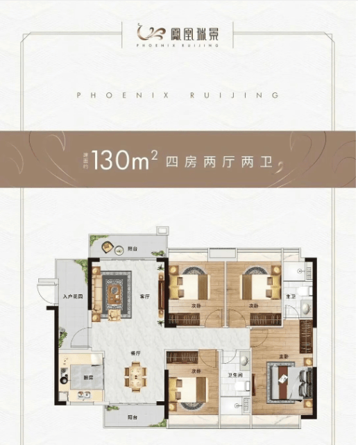 130㎡以上四房:阔绰主卧、双卫设计,适合三代同堂或高阶改善。