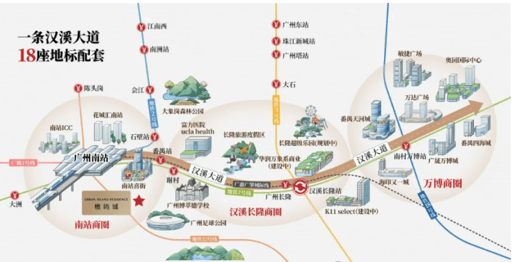 从区域经济格局来看,广州南站 8 公里范围内聚集了番禺区 70% 的经济总量与 70% 的常住人口,串联万博、长隆两大核心板块,形成 “超级枢纽 + 超级商圈” 的发展模式,直接平移都市核心区的发展势能。区域内构建起前沿的产业体系,吸引了大量高端产业与优质人口入驻,同时配套集中的商业资源、宜居的生态环境与高效的通勤网络,成为番禺片区最适宜生活居住的核心组团,更是广州南拓进程中不可复制的黄金动脉。随着住宅模块的全面落地,南站片区彻底打破了以往枢纽、商业、产业与居住割裂的格局,形成功能互补、资源共享的成熟生活圈,万科檐屿城正处于这一核心生活圈的中心位置,坐享区域发展的全部红利。