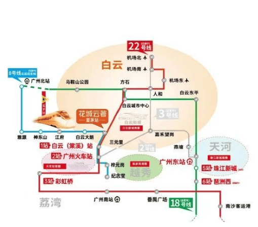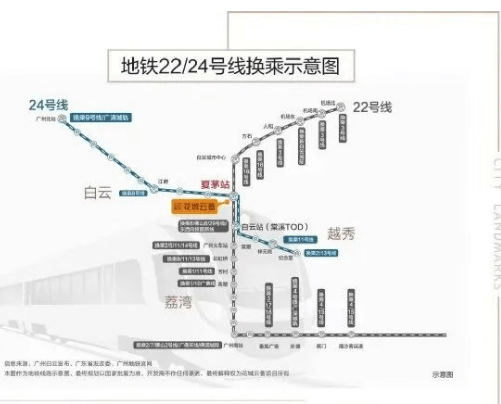 公交珠实花城云著地理位置优越,距离地铁22号线和8号线北延段支线夏茅站仅约50米,实现了真正的“双地铁上盖”。此外,项目临近机场路、华南快速、机场高速等主干道,自驾出行也十分便捷。未来规划中的地铁24号线将进一步提升区域的交通便利性。
