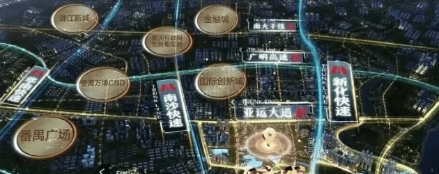 板块内已有地铁4号线和3号线东延段交汇站海傍站开通,6站直达琶洲,7站到天河,距离天际组团1.1公里。还有规划中的8号线南延线。自驾出行也非常便捷,出门即是亚运大道,通过广澳高速连接新化快速,开车去琶洲也十分方便。