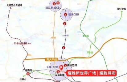 无缝接驳,出行无忧:耀胜尊府位于地铁3号线、7号线及佛莞城际交汇处,通过专属通道直达汉溪长隆站,实现“地铁入户”。此外,周边汉溪大道、新光快速等主干道环绕,自驾出行便捷,可快速到达珠江新城、广州南站等核心区域。
