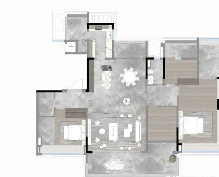 建面约176平方米户型:三梯三户设计,独梯入户,南北双阳台,主卧270度飘窗,得房率高,居住舒适度极佳。