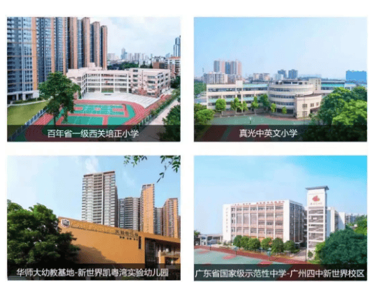 除此之外,项目周边3公里范围内还有多所优质中小学、幼儿园,形成完善的教育体系,满足不同年龄段孩子的教育需求。值得一提的是,新世界中国十年如一日躬身入局区域教育发展,先后引入广州四中、西关培正凯粤湾校区,如今又将改建升级新校区,进一步完善区域教育配套,为业主子女提供更优质的教育资源。(教育详情请咨询教育局)