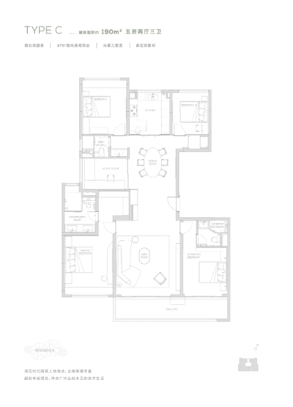 缦云广州主打16-17层纯板式小高层住宅,采用南北对流设计,主力户型面积段集中在145㎡以上,整体定位偏向改善型和终极置业客群。所有楼栋均为两梯两户或三梯两户结构,部分单位实现专梯入户,极大增强了居住的私密性和尊贵感。外立面采用轻质铝板幕墙结合云翼曲线造型,灵感源自迪拜公主塔,兼具现代感与艺术美感。弧形阳台设计不仅提升了建筑颜值,也保证了室内拥有开阔的观景视野。尽管受限于地块条件,部分楼间距相对紧凑,但得益于较低的建筑高度和错落布局,整体采光通风表现仍属良好。这种低密度、小高层的产品形态,在寸土寸金的天河核心区尤为稀缺,成为追求安静、舒适生活的买家的重要考量因素。