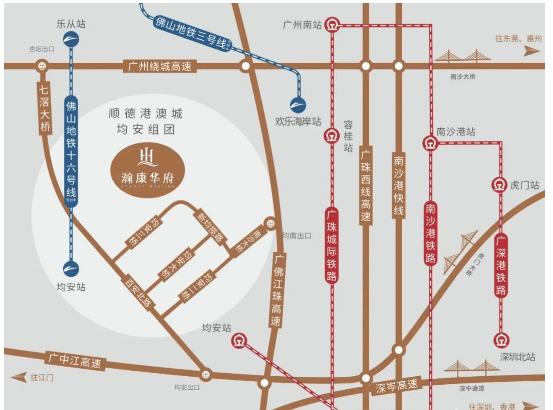 瀚康华府受益于其优越的地理位置,坐拥多条高速公路及铁路线,包括南沙港铁路、广中江高速以及规划中的佛山地铁16号线等。项目距离南沙仅3站路程,且通过深中通道可直达深圳宝安。这些交通设施的完善不仅提高了出行效率,也使得这里的居住环境更加便捷舒适,为居民提供了一个真正的一小时广深莞都市圈生活体验。
