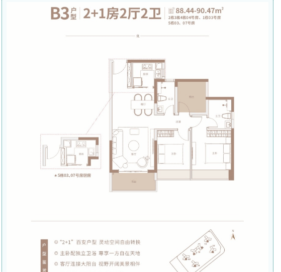 瀚康华府提供多种户型选择,包括84-106㎡的三房和121㎡的四房,适应不同家庭结构的需求。所有户型设计均强调南向布局,确保每户都能享受到充足的阳光和景观视野。特别推荐的建面108㎡的舒适阔绰三房户型和建面90㎡的精致2+1百变小三房户型,不仅空间利用率高,而且在细节处理上精益求精,力求为住户创造一个既实用又美观的居住空间。当前项目限时钜惠首付仅需2万,为购房者提供了一个难得的机会。
