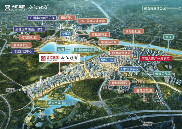 合汇璟园坐拥挂绿新城、三甲医院 、挂绿湖、少年宫、低碳总部园等市政配套,近赏增江画廊、沙滩泳场、鹤之洲湿地公园、绿道等 自然景观资源。