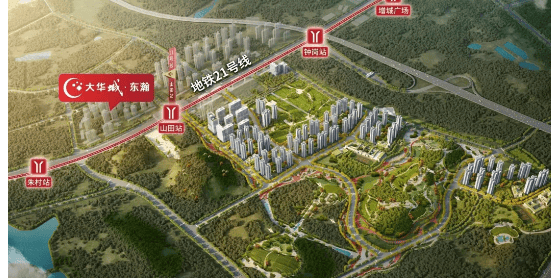 大华城东瀚坐落于广州科教城核心板块,占位21号线山田地铁D出口约50米黄金位置,隶属大华集团打造的全国第八个平方公里新城范畴。根据项目官方规划,该新城涵盖大华城·东郡、大华城·东瀚、大华朱村村旧改、大华山田村旧改四大项目,未来将形成集地铁、教育、产业、商业、生态于一体的大型居住集群,容纳约30万人口,成为广州东部的繁华新中心。