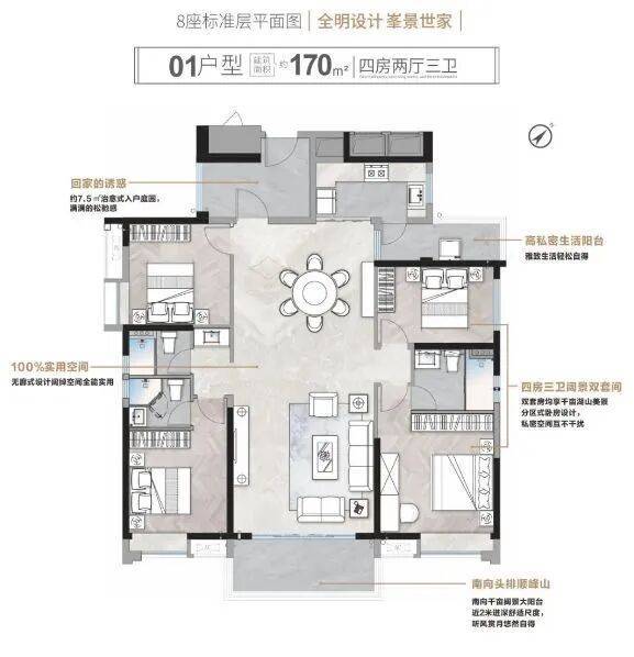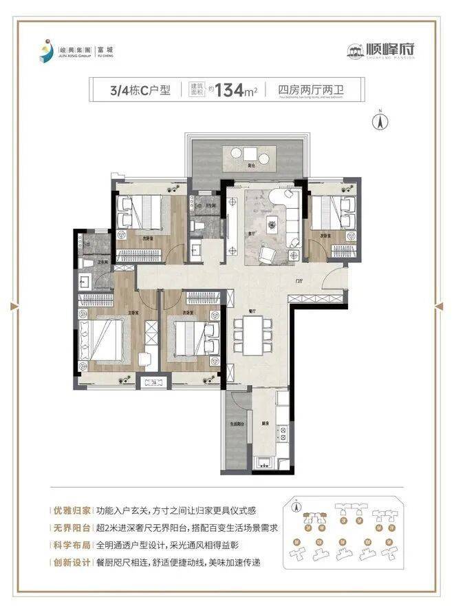 顺峰府提供多样化的户型选择,以满足不同家庭的需求: