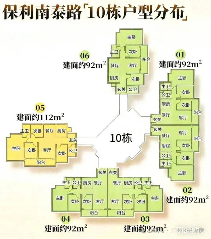其中,#1栋、#10栋,#2栋,三梯6户;#3、#5、#7、#8、#9栋均为两梯5户。