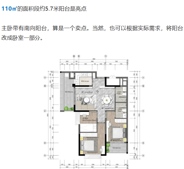 友联·君御提供的户型面积范围从约48㎡至134㎡不等,涵盖了从一房到三房的多种户型设计,满足不同家庭结构的需求。特别是其中的一些亮点户型,如带有5.7米阳台的110㎡户型,主卧南向阳台的设计,都增加了居住的舒适度和实用性。