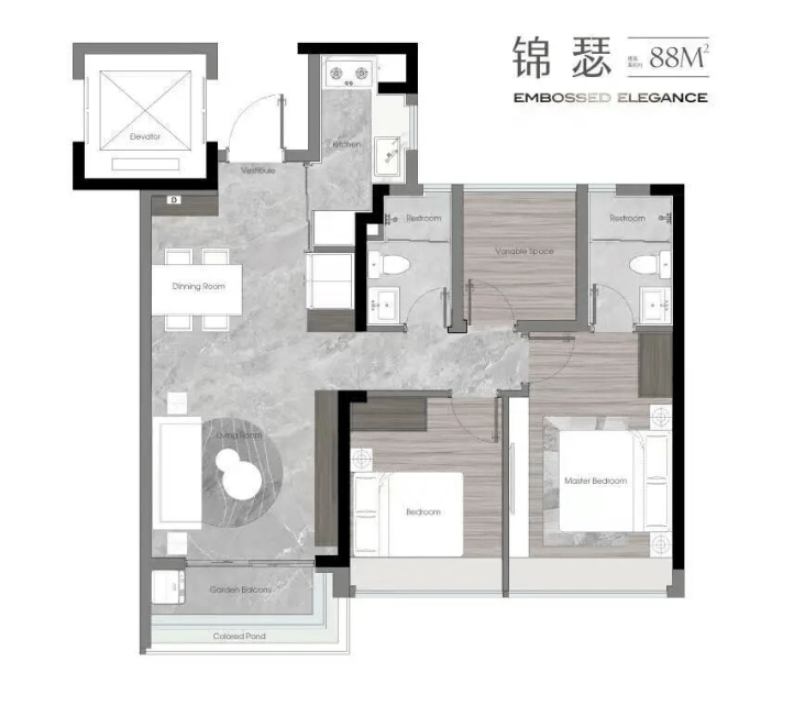 最后是建面约88㎡的南向臻品户型。这个户型同样采用了奢厅入户设计,尊崇归家体验。南北对流,三开间朝南的设计让室内通风良好,光线充足。而且,主套还带有衣帽间,为你的生活提供了更多的便利和舒适。这样的户型设计,无论是对于新婚夫妇还是三口之家来说,都是一个非常不错的选择。