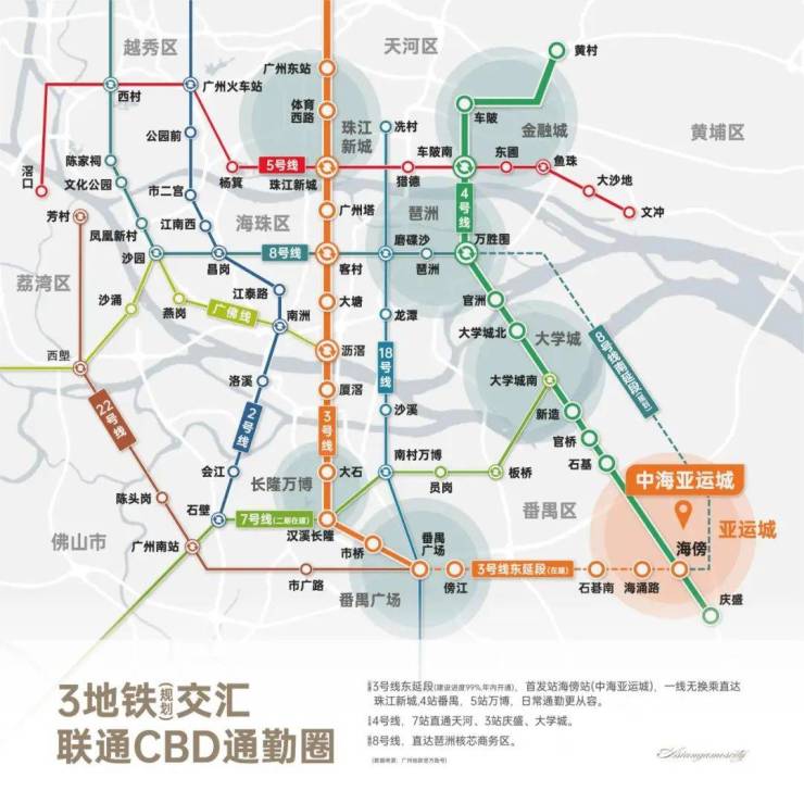 未来规划中的8号线延长线也将途经此地,进一步强化区域连接力。自驾方面,亚运大道贯穿全城,接驳南沙港快速、京珠高速等主干道,出行选择多元高效。