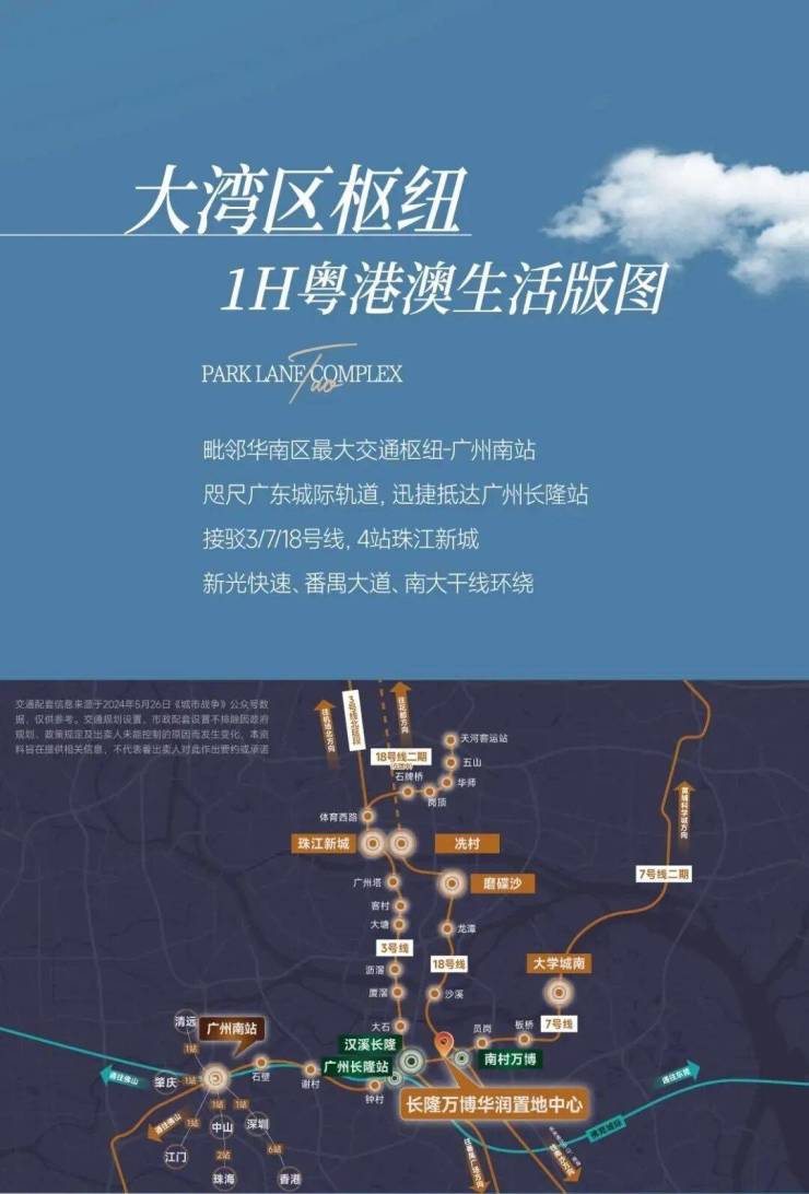 对于城市高端人居而言,交通是价值兑现的核心命脉。华润置地・长隆・万博悦府坐拥3 号线、7 号线、18 号线三大城市级地铁干线,形成 “三地铁环绕、多线路换乘” 的超级交通网络,实现与广州全城及粤港澳大湾区的高效连接,通勤与出行效率位居城市前列。