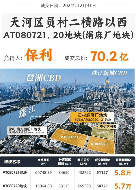 2024年12月31日,天河员村绢麻厂地块由保利成功竞得,成交楼面价达到5.1万/㎡。这不仅标志着保利在广州市场的又一次重大投资,也预示着珠江前航道将出现一个全新的高端居住社区——【保利天曜】。