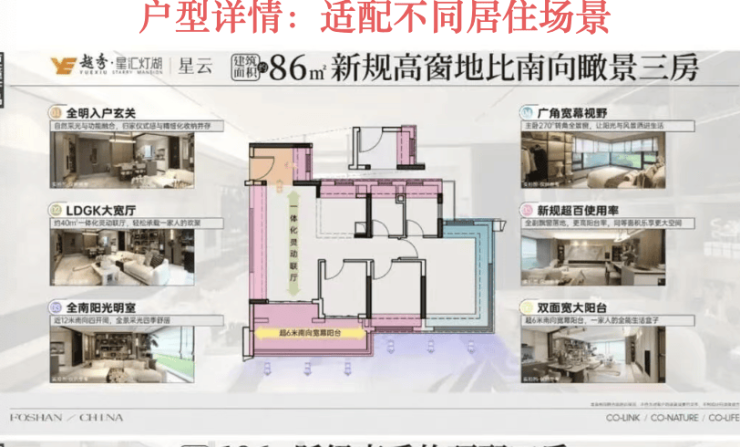 越秀星汇灯湖主打建面约100-140㎡三至四房精装户型,满足不同家庭结构需求。100㎡三房户型采用“三开间朝南+双卫设计”,空间利用率高,适合三口之家;120㎡三房户型采用“大横厅+主卧套房”设计,客厅开间达4米,主卧配备独立衣帽间,适合改善型需求;140㎡四房户型采用“四开间朝南+双主卧套房”设计,客厅开间达4.2米,主卧配备独立卫生间,适合二胎家庭或三代同堂。所有户型均采用“南北通透+动静分区”设计,客厅、主卧朝南,采光面超8米,日照时长超6小时/天;厨房、卫生间采用“明厨明卫”设计,通风效果极佳。此外,项目所有户型均采用“精装交付+智能家居”标准,配备中央空调、新风系统、智能门锁等设备,实现“拎包入住”。
