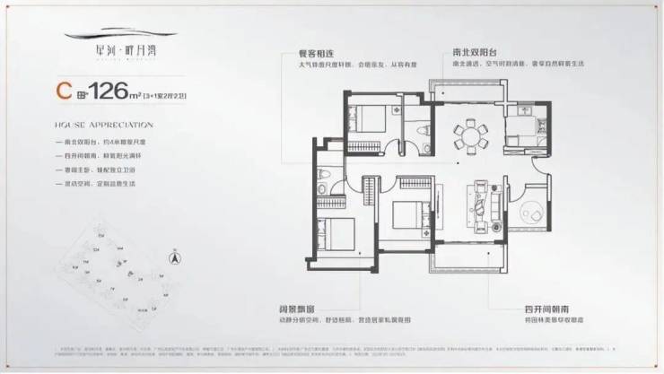 126㎡ 3+1房2卫(南北双阳台)