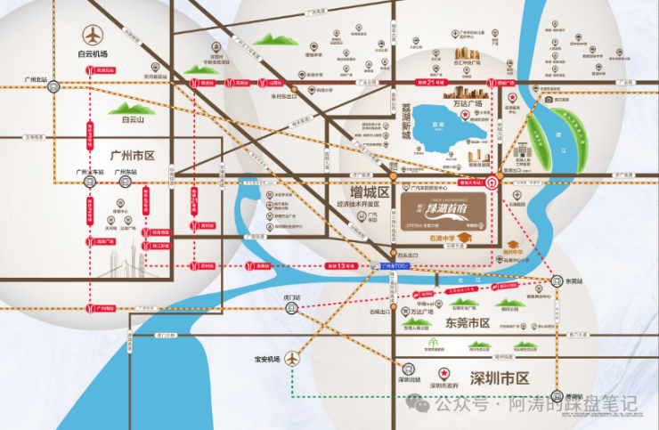 交通配套方面,项目构建多维立体交通网络,满足业主多元出行需求。直线距离约 1.2 公里即达广汕高铁增城站,2023 年 9 月已开通运营,2 站直达天河,约 35 分钟畅享主城繁华。社区门口设公交站点,直达 21 号线增城广场站,开车 18 分钟、公交 25 分钟接驳地铁,4 站快线直达天河核心区。规划地铁 16 号线石滩站距项目约 500 米,未来开通后实现地铁就在家门口,进一步升级出行效率。自驾经新城大道、荔新公路、广园快速 3 条干线,快速通达荔城、新塘、黄埔、天河等区域,距离珠三角环线高速入口约 2 公里,跨城出行便捷高效。