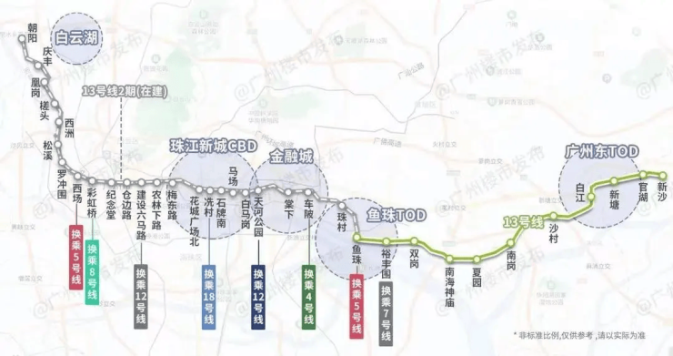 公共交通方面,项目直线距离地铁13号线白江站仅700米,步行8分钟即可抵达站点,是名副其实的“近地铁盘”。从白江站乘坐13号线,2站可直达黄埔区,8站通达天河区核心区域,轻松衔接主城工作圈。更为值得期待的是,在建的13号线二期工程,横跨黄埔、天河、越秀、荔湾、白云五大主城区,比肩3号线黄金动脉,开通后无需换乘,一轨直达珠江新城花城广场北站,进一步缩短与主城的时空距离,提升出行效率。