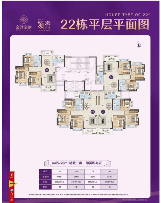 金泽豪庭当前在售第四期18栋、19栋、22栋、23栋房源,主力户型为建面约85-114㎡三至四房,全部为精装现房交付,户型设计兼顾实用性、舒适性与灵活性,适配不同家庭的居住需求,每一款户型都经过精心打磨,最大化提升空间利用率与居住体验。