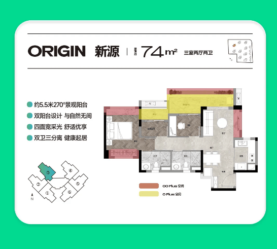 保利珑玥公馆的户型设计精准契合刚需家庭需求,在售户型涵盖约 74㎡、76㎡、82㎡三房以及 122㎡五房,均具备超高实用率,部分户型使用率加赠送高达 95%,性价比突出。其中,约 74㎡、76㎡3 房 2 厅真 2 卫户型,拥有 5.5 米大阳台与 270° 无敌视野,四开间采光让房间全天沐浴阳光,“真两卫” 设计解决了家庭成员如厕排队的问题,超 83% 的标准层实用率让空间利用更充分。