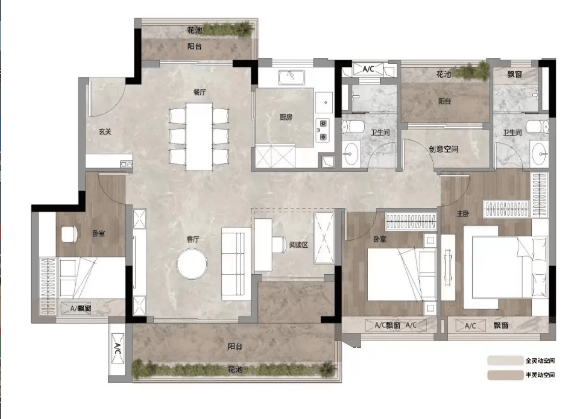 约 82㎡3 房 2 厅 2 卫户型为南向看山设计,6 米大阳台搭配 270° 南望中轴园林,四开间朝南保证采光与通风,主卧双飘窗提升居住舒适度,高层还能眺望帽峰山,景观绝佳。约 122㎡5 房 2 厅 2 卫户型则是钟落潭唯一板楼户型,稀缺性强且好转手,五开间朝南、南北对流双阳台,厅可改 6 米大开间,主卧近 30㎡,一梯两户的设计大幅缩短等梯时间,居住体验拉满。