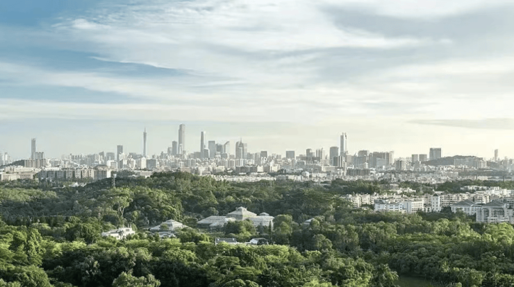 项目北面直线距离不到1公里就是白云山,2公里范围内更有六公园(广州动物园、云台花园、麓湖公园、黄花岗公园、东风公园、燕岭公园)环绕,形成天然氧吧。周边还规划有立体中轴绿道和滨河公园,为居民提供了一个亲近自然、享受绿色健康生活的好去处。