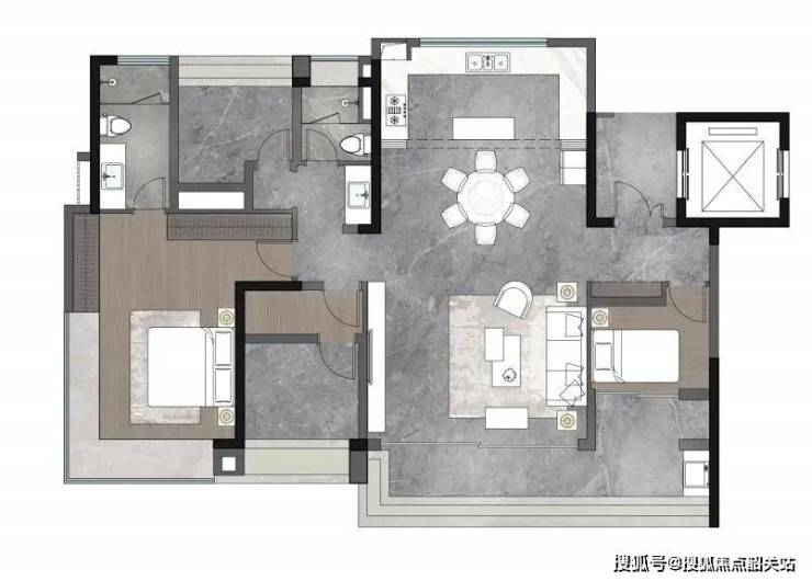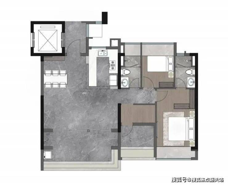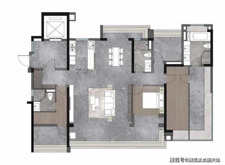 128㎡四房两卫:客厅面宽4.2米,双阳台设计(生活阳台3㎡+景观阳台7㎡)。