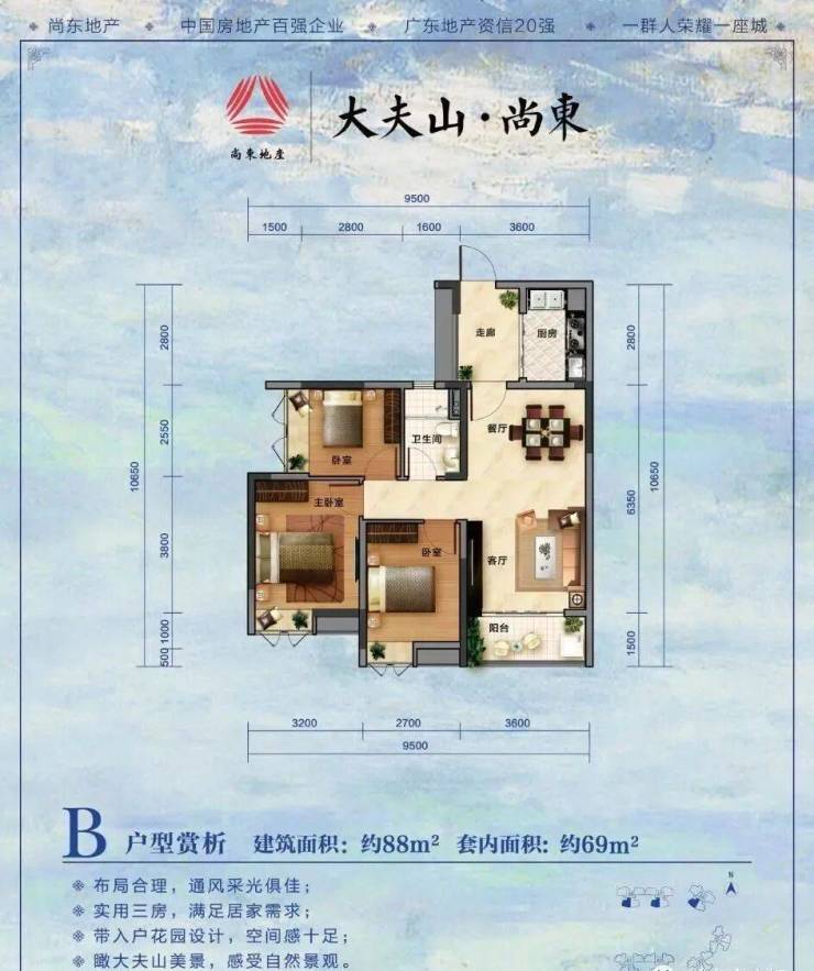 大夫山·尚东提供多种户型选择,涵盖从两房到四房的不同面积段: